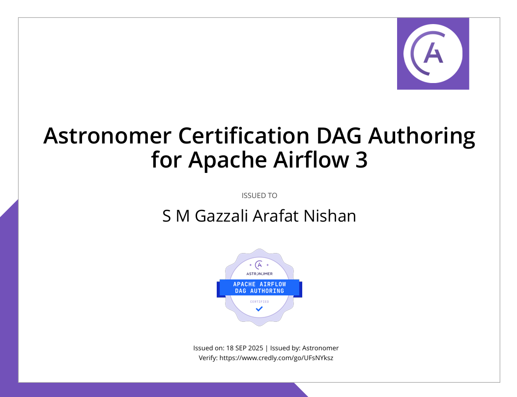 DAG Authoring (Airflow 3) | Astronomer Certification DAG Authoring for Apache Airflow 3 | Verify | Download | 2025-09-18 | No Expiry | Astronomer | Online Proctored |